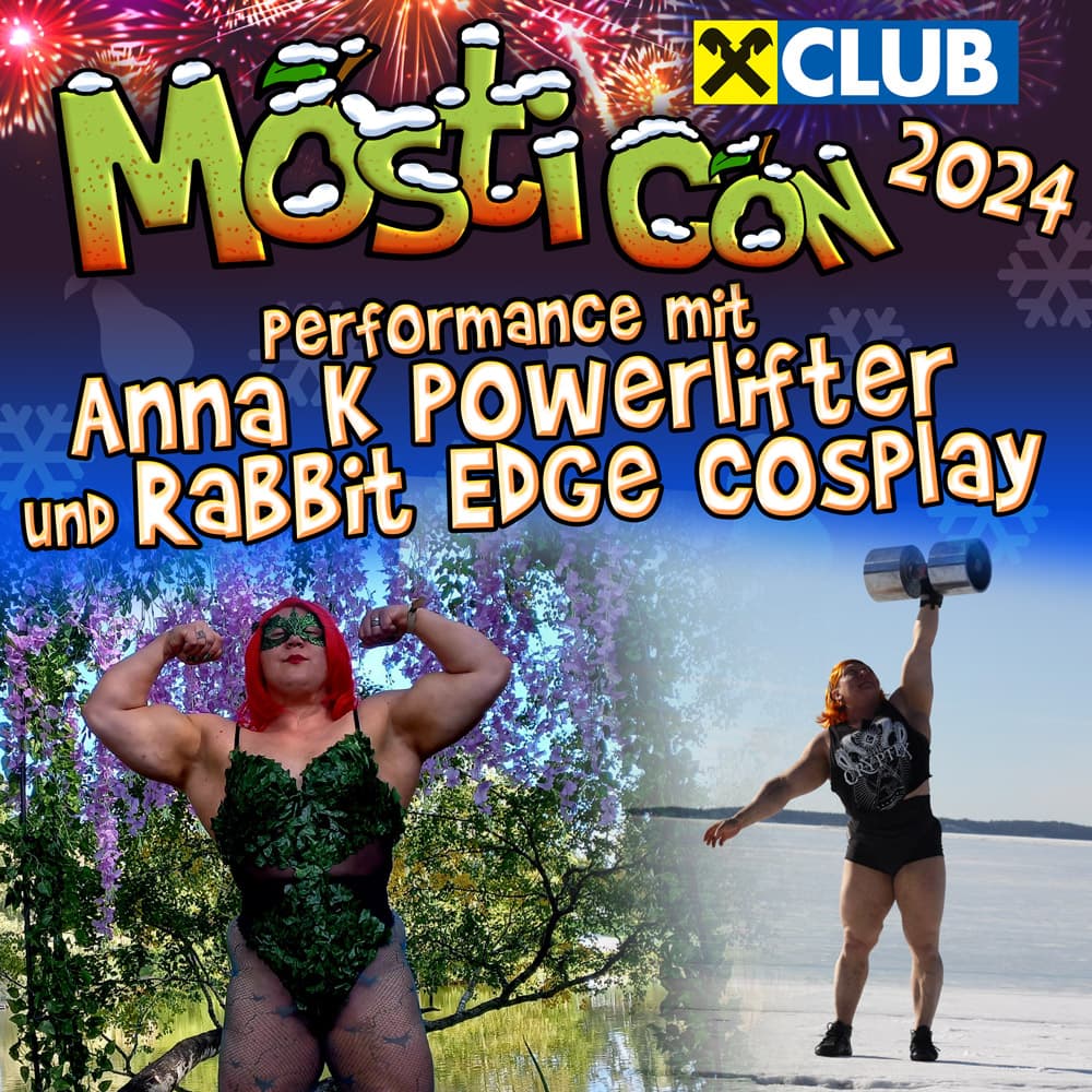 Bei der MostiCon wird Anna K Powerlifter am Samstag um 17:00 auf der Bühne als Jessica Rabbit auftreten und zusammen mit Rabbit Edge Cosplay eine kurze 'Lift & Carry' Show vor ihrem Interview/ Q&A, auf der Bühne zum Besten geben.